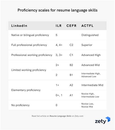 Proficiency Levels For Resume - Learn how to show levels of hard and soft skills properly and stun the recruiter. List your years of experience with each skill. Specify your skill level in parentheses after each skill. Categorize skills by level of proficiency. In this article, we discuss what the different language levels are, how you can determine your own level of proficiency and.